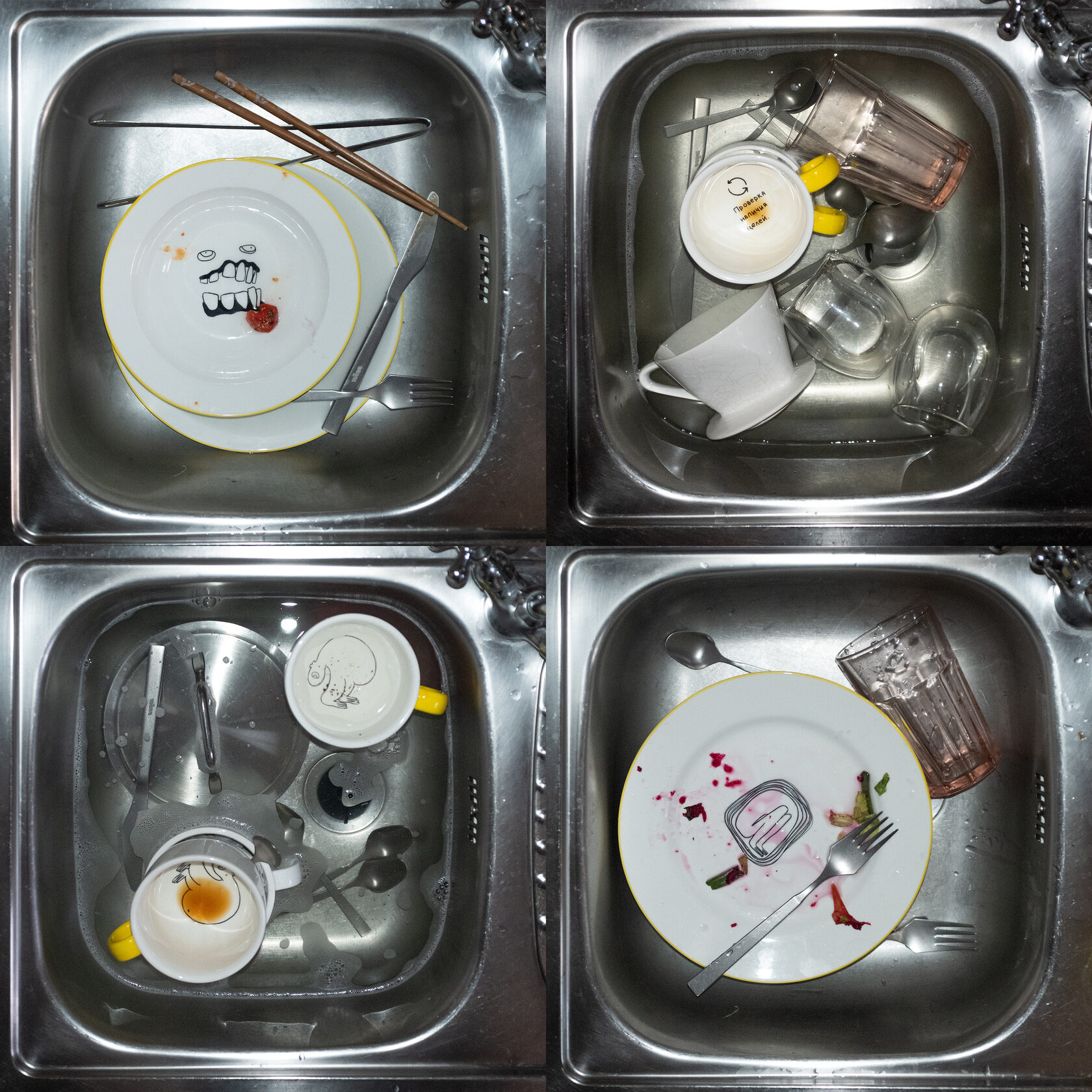 Татуировка предполагает решимость и необратимость: изображение навсегда становится частью тела, видимой или скрытой, но всегда присутствующей. Здесь выбор другой. Не наносить рисунок на кожу, но всё равно жить с ним. Соприкасаться каждый день. Брать в руки, подносить к губам, мыть, ставить на полку. Посуда становится альтернативной кожей — поверхностью постоянного контакта, не показного, а телесного и привычного.